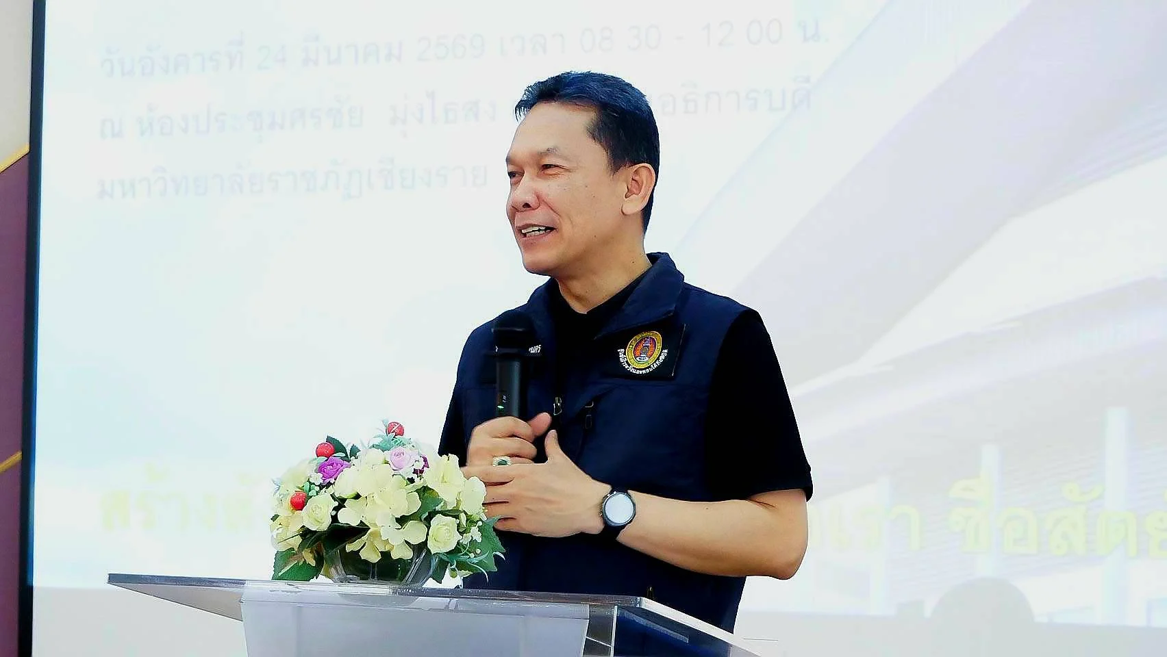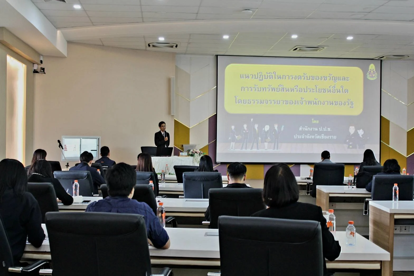 ภายในงานได้รับเกียรติจาก คุณภัทรพล หงษ์จันทกานต์ เจ้าพนักงานป้องกันการทุจริตชำนาญการพิเศษ สำนักงานป้องกันและปราบปรามการทุจริตแห่งชาติ ประจำจังหวัดเชียงราย เป็นวิทยากรบรรยายในหัวข้อ “แนวปฏิบัติในการงดรับของขวัญและการรับทรัพย์สินหรือประโยชน์อื่นใดโดยธรรมจรรยาของเจ้าพนักงานของรัฐ” โดยได้ให้ความรู้เกี่ยวกับหลักเกณฑ์ ข้อกฎหมาย และแนวทางปฏิบัติที่ถูกต้อง เพื่อป้องกันการทุจริตและสร้างวัฒนธรรมองค์กรที่โปร่งใส