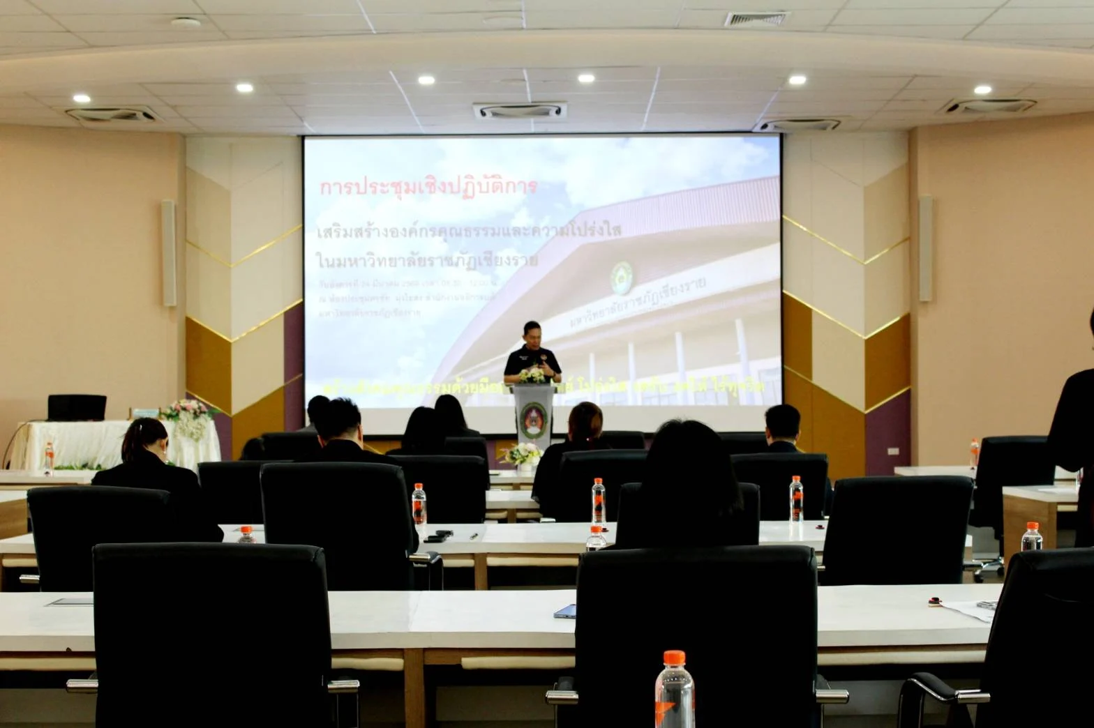 มหาวิทยาลัยราชภัฏเชียงราย จัดการประชุมเชิงปฏิบัติการหัวข้อ “เสริมสร้างองค์กรคุณธรรมและความโปร่งใสในมหาวิทยาลัยราชภัฏเชียงราย” เมื่อวันอังคารที่ 24 มีนาคม 2569 ณ ห้องประชุมศรชัย มุ่งไธสง สำนักงานอธิการบดี มหาวิทยาลัยราชภัฏเชียงราย โดยมีผู้บริหาร บุคลากร และผู้เกี่ยวข้องเข้าร่วมกิจกรรมอย่างพร้อมเพรียง